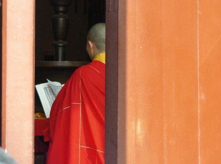 Shenxiang-Tempel (Shanghai) braungelbe Hallen tanzende Dächer die junge Nonne im roten Gewand drückt mir verstohlen als sie vorbeihuscht grasgrüne Birnen zum Gruß in die Hand