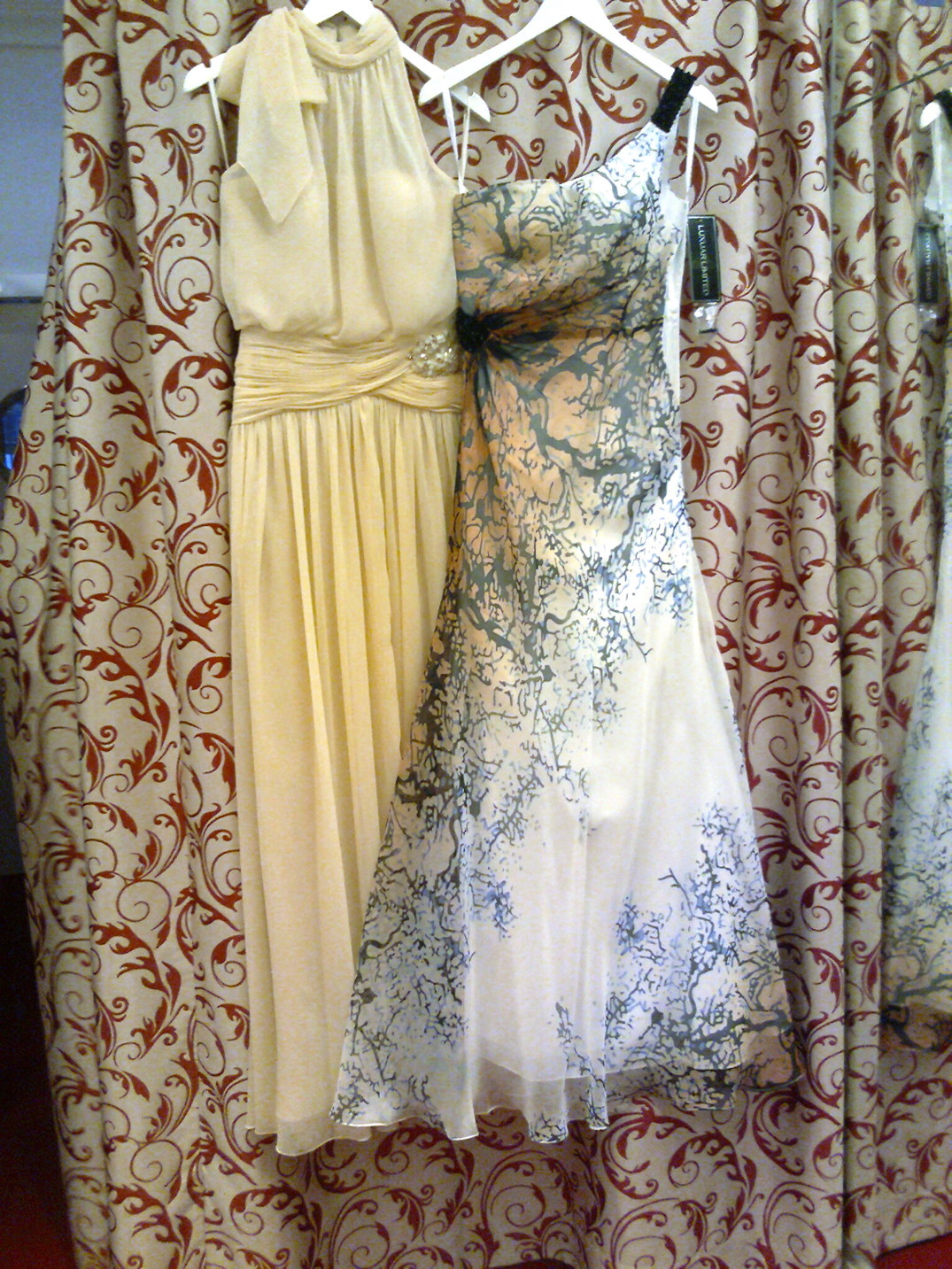 Anprobe hinter dem Vorhang flüsternde Seide Reißverschlüsse trompeten ein Lied ich warte draußen angestrengt lauschend mal ich mir aus was drinnen geschieht