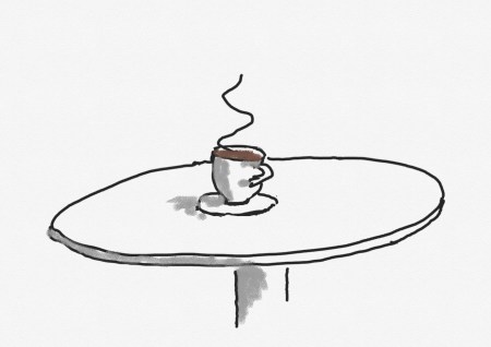 ein paar Schluck Kaffee schon wird das Marmortischchen zum Weltenlenkrad