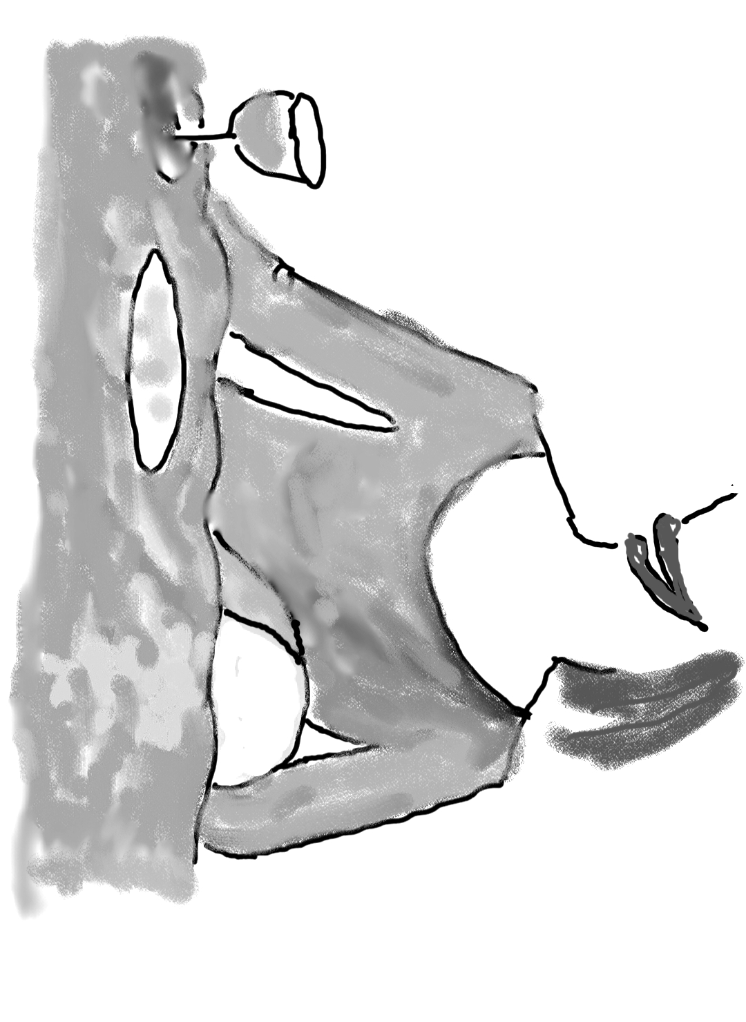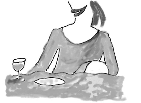 sie lehnt sich zurück über den Tischtuchwellen glänzt mondlich ihr Knie