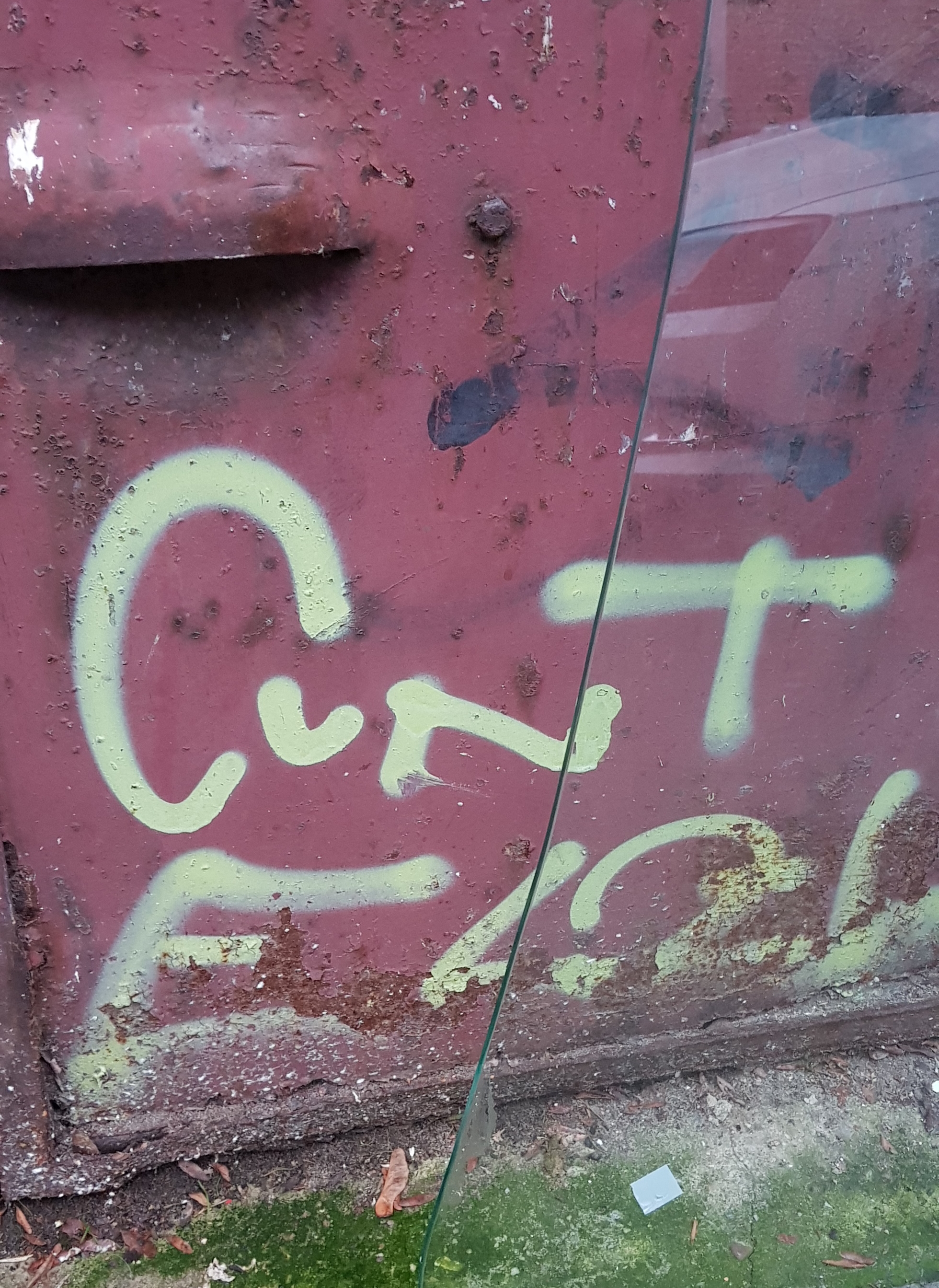 warum nur sprüht er immerzu CUNT an die Wand? lernt er Französisch?