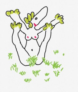 der Bauch (schreibt Irma) verzweige sich in Äste mit grünen Blättern