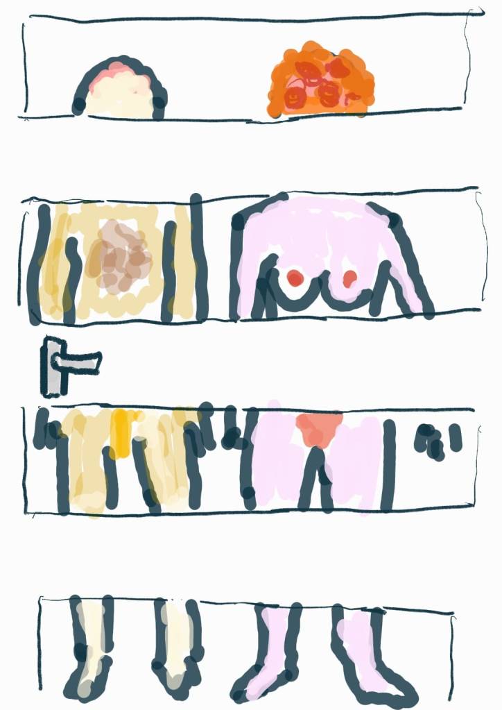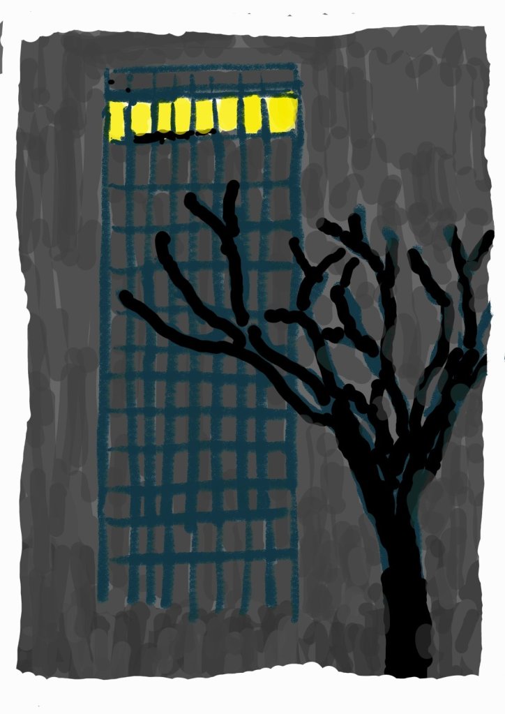 Fensterblick 1978; Haiku 2016; Zeichnung 2024 anlässlich des Hitchcock-Films „Das Fenster zum Hof“